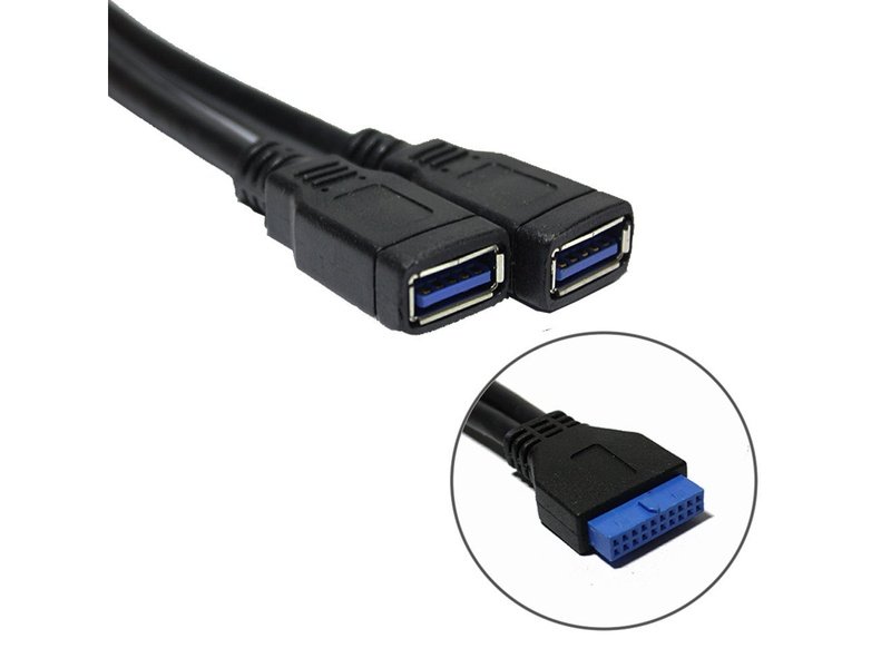 2 Port USB 3.0 Type A Female to 20 Pin Header Female Cable