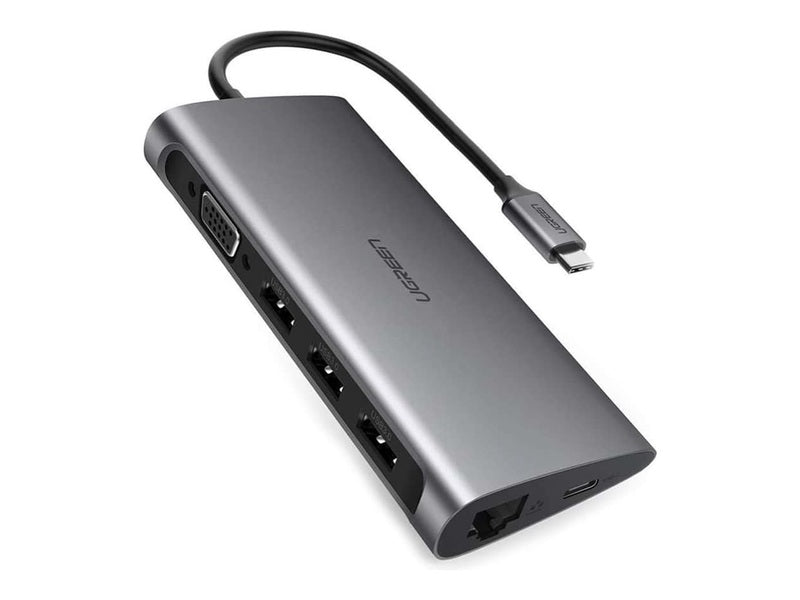 1. MULTI PORTS USB C DOCKING STATION: Compatible with Thunderbolt 3 port, UGREEN USB-C hub easily expands your MacBook with 1 HDMI, 1 VGA, 1 RJ45 Ethernet, 1 Type-C Power Delivery 3.0 charging port, 3 USB 3.0 Type A ports and SD TF card slots