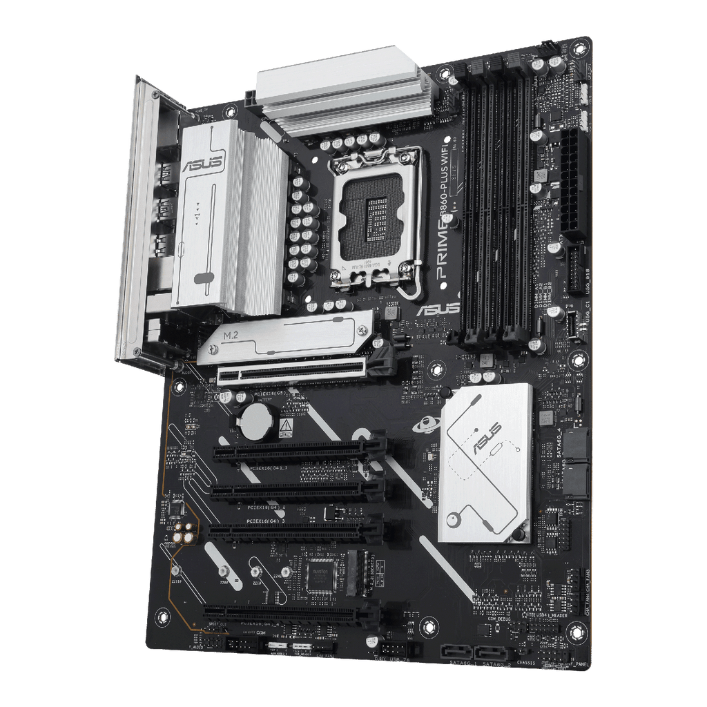 The PRIME B860-PLUS WIFI-CSM motherboard is engineered with multiple onboard heatsinks and an array of hybrid fan headers to help ensure your rig stays cool and stable under intense workloads.