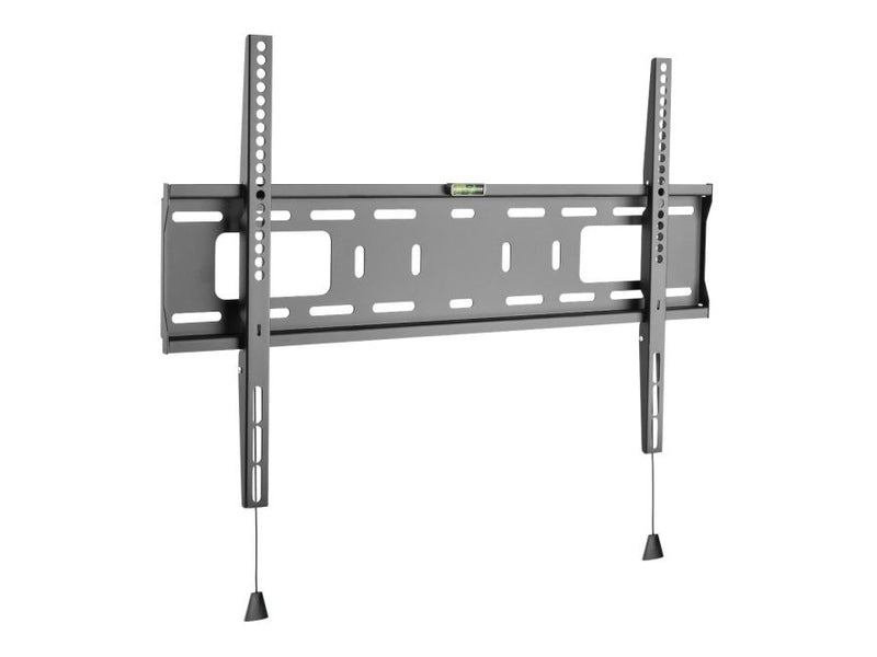 The mount has fixed angle parallel to the wall and multiple features for fast and easy installation. Lateral shift enables the display to be positioned exactly as desired, even if offset to the wall bracket position. It has a built-in spirit level, forgiving slotted mounting holes, quick-connect display attachment, and easy to conceal magnetic tipped display release cords.