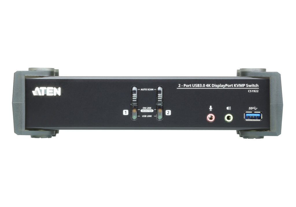 The ATEN CS1922 2-Port USB 3.0 4K DisplayPort KVMP™ Switch provides the latest innovations in desktop KVM switching technology for the increasing demand of higher video quality and transfer speeds on modern computers. The ATEN CS1922 offers an unprecedented performance of delivering 4K resolution, the next generation USB 3.1 Gen 1 hub with SuperSpeed 5 Gbps data transfer rates and enhanced user-friendly operations.