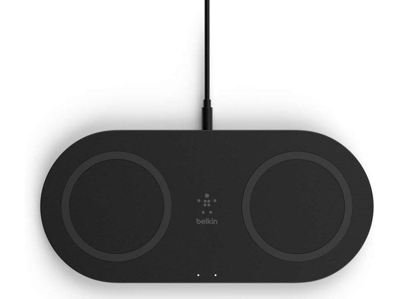 Double up on wireless charging pads and free up your counter or desk space for good. BOOST↑CHARGE™ Dual Wireless Charging Pads are designed for seamless compatibility with the latest smartphones , providing each phone up to 15W of power at the same time, and making them perfect for coworkers or families that use different devices. The non-slip grip design keeps your devices securely in place to ensure they keep charging, and LED lights indicate when they’re charging correctly. Qi™-Certified for safety and case compatible with most lightweight cases, up to 3mm.