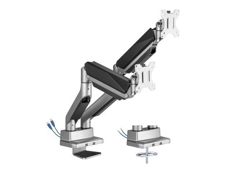 Designed for most 17″-35” monitors and holds up to 15kg/33lbs (per screen), the LDT52-C024U Economy Heavy-Duty Gas Spring Monitor Arm is perfect for heavy and oversized displays. Integrated 180° rotation stop prevents the arm from hitting adjacent partitions and walls. Quick-release VESA plate for quick mounting or removal of the monitor in mere seconds. Rear tool holder provides easy access for any future adjustment. With absolutely great prices, the LDT52-C024U is one of the best choices to bolster your sales!