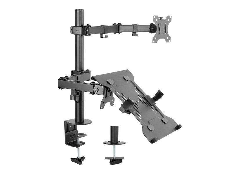 The LDT12- C1M2KN is upgraded monitor arm, which double joint is able to be tightened, so you can adjust exactly how stationary you want everything to be. Constructed of high grade steel, this rugged mount built to resist scratches and supports screens up to 8kg/17.6 lbs. and 32″ in size. We made a detachable VESA panel, just simply screw the monitor on the panel and slide back to the mount. Full motion structure enhances your viewing option with a large monitor at the same time with your laptop/notebook. Besides, cable clip is included for keeping cables organized and protected. Please refer to product diagram for further details.