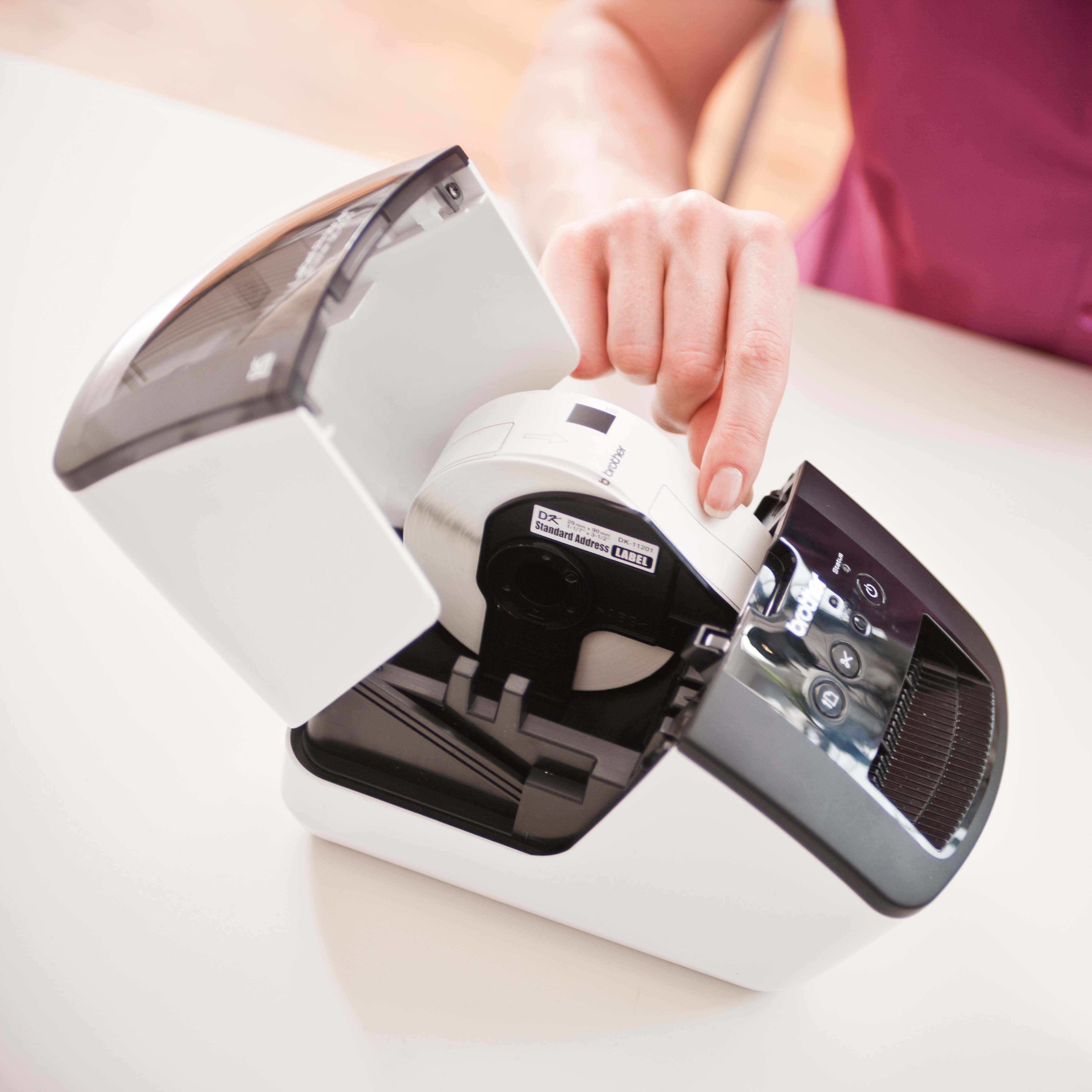 Choose from a variety of die-cut or continuous labels and use the built-in cutter to trim your label to the precise length needed (up to one metre)