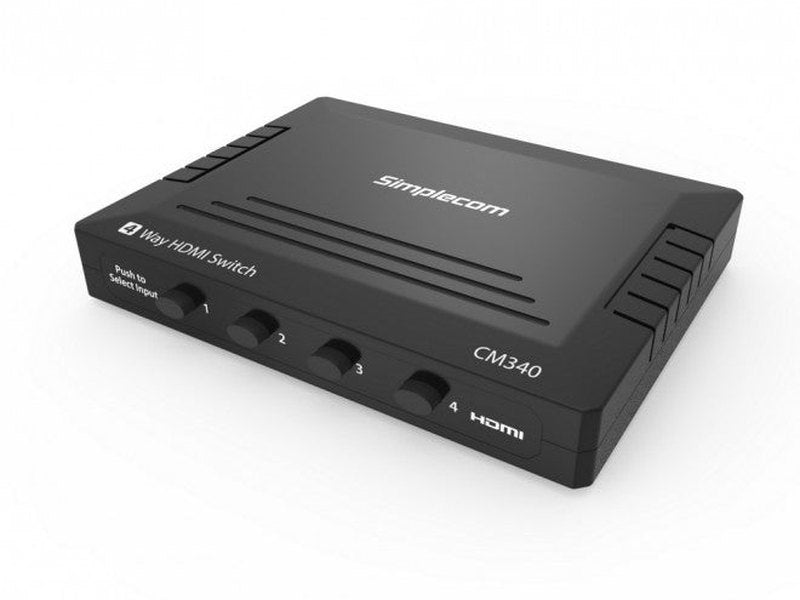 The Simplecom CM340 HDMI Switch Box solves this problem by allowing 4 HDMI sources to be connected to a single HDMI port on a HDTV. Switching between the 4 devices is then made easy by the front control buttons so you no long have to spend ages, fiddling with wires behind your TV.