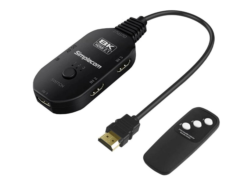 Simplecom CM353 3-Port HDMI 2.1 Switch 3 IN 1 OUT Splitter HDCP 2.3 8K@60Hz