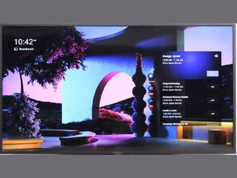 Transform your meeting rooms into streamlined and productive spaces, featuring a 4K ultra-HD, non-smart screen and compatibility with Microsoft Teams Rooms, Zoom Rooms, and other video conferencing software.