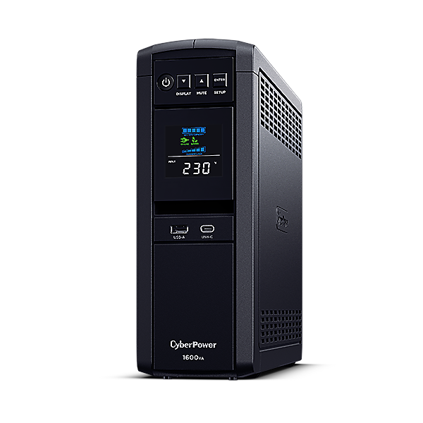 CyberPower CP1600EPFCLCD with Pure Sine Wave output safeguards mid- to high-end computer systems, servers and networking hardware that use conventional and Active Power Factor Correction (PFC) power supplies. Designed with GreenPower UPS™ Technology to improve UPS operating efficiency and to minimize its energy consumption, this UPS delivers significant energy cost savings over conventional UPS systems.