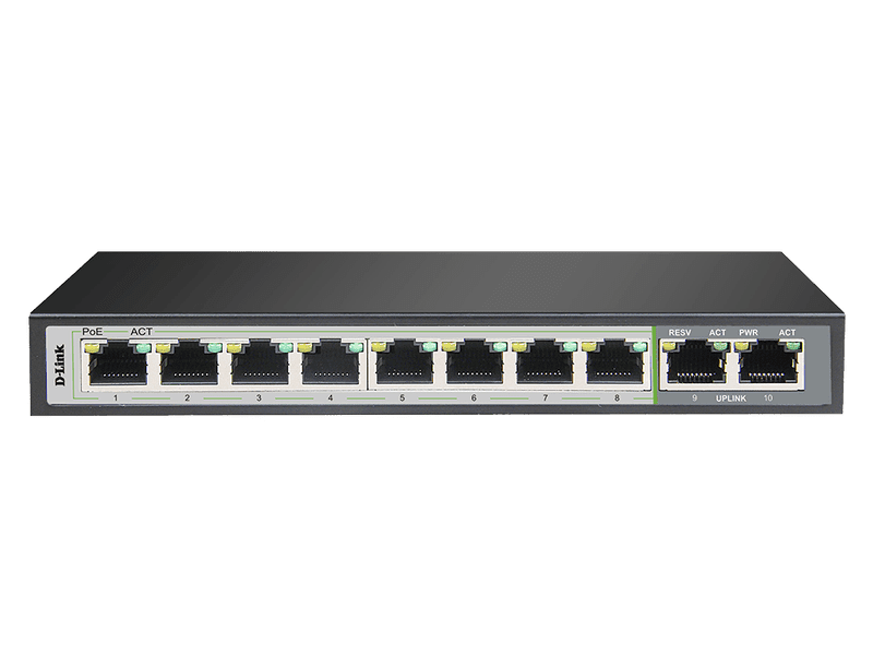 10-Port Gigabit PoE Switch with 8 Long Reach PoE Ports and 2 Uplink Ports