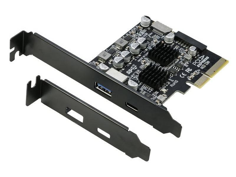 With integrated PCI Express to USB 3.2 Gen 2 controller and USB 3.2 Gen 2 hub controller, this expansion card allows the USB ports on both the rear and front panels to operate simultaneously. The rear panel includes one USB-C and one USB-A port, while there are two internal connectors for front panel, a 19/20-Pin connector for front USB 3.0 port and a Key-A (Type-E) connector for front USB-C port.