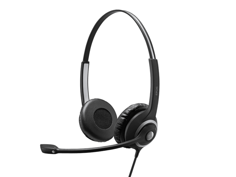 Wired, robust, double-sided headset with Easy Disconnect, optimized for use with desk phones. Features EPOS Voice™ and a noise-cancelling microphone for a natural and clear communication experience. Its durable and lightweight headband construction and acoustic foam ear pads with leatherette covers makes it comfortable and perfect for hours of use. Designed for contact center and office professionals requiring quality sound performance, durability and all-day wearing comfort.