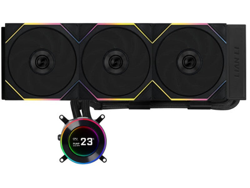 Lian Li Hydroshift II 360 TL RGB Liquid CPU Cooler - 360mm AIO - 3X 120 RGB Fans - 2.1” IPS LCD Screen - 3 Control Mode - Flexible Tubes Clamp - LGA 1851/1700, AMD AM5/AM4 - Black (GHS2LCD36TB)