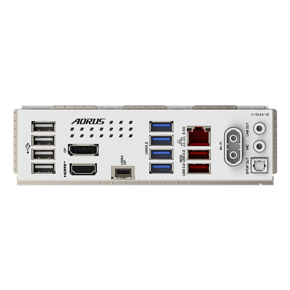 | Back Panel I/O | 1 x USB4® Type-C® (DisplayPort) 2 x USB 3.2 Gen 2 Type-A (red) 4 x USB 3.2 Gen 1 4 x USB 2.0/1.1 1 x DisplayPort 1 x HDMI 2 x antenna connectors 1 x RJ-45 LAN 1 x optical S/PDIF Out 2 x audio jacks |