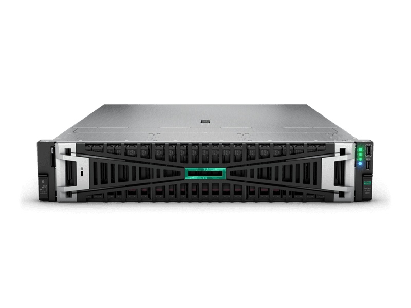 HPE ProLiant DL345 Gen11 server with one AMD EPYC™ 9115 Processor, 64 GB (2x32 GB) Dual Rank Memory, one HPE MR416i-p Gen11 x16 Lanes 8GB Cache PCI SPDM Plug-in Storage Controller, support for eight SFF drives, six HPE ProLiant DL3X5 Gen11 2U Standard Fan Kits, two HPE 480GB SATA 6G Read Intensive SFF BC Multi Vendor SSDs, two HPE 800W Flex Slot Platinum Hot Plug Low Halogen Power Supply Kits, and a 3/3/3 warranty