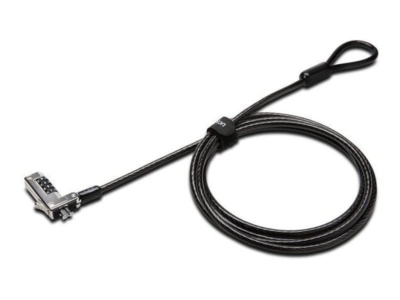 With today’s slim laptops, a typical cable lock head might fit, but the laptop itself is so thin that once the lock is attached, it doesn’t allow the laptop to lie flat because the thickness of the lock is greater than the laptop, unevenly raising it off its surface. The Slim Combination Laptop Lock is the strongest keyless locking solution that allows ultra-thin and 2-in-1 laptops with standard lock slots to lie flat and stable.