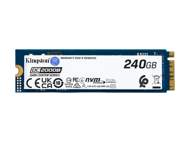 Kingston DC2000B is a high-performance PCIe 4.0 NVMe M.2 SSD using the latest Gen 4x4 PCIe interface with 112-layer 3D TLC NAND. Ideally suited for use in high-volume rack-mount servers as an internal boot drive(s) to preserve valuable front-loading drive bays, as well as for use in purpose-built systems where a high-performance M.2 SSD is needed that includes hardware-based on-board power loss protection (PLP). New for DC2000B is an integrated aluminum heatsink that offers broader thermal compatibility for a wide range of systems. DC2000B delivers low latency and excellent IO consistency to handle various workloads from boot drive applications to high-speed application caching. DC2000B is rated at 0.4 DWPD write endurance and carries a 5-year warranty.