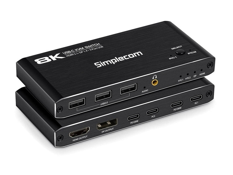 Simplecom KM470 2-Port USB-C KVM Switch 8K Docking Station HDMI 2.1 DP for Laptop Tablet