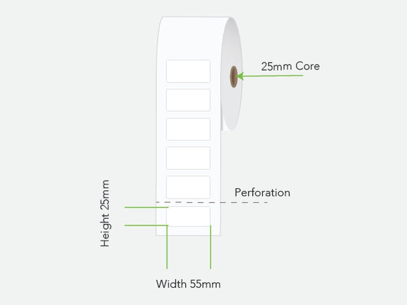 Calibor 55MM X 25MM Label Plain Perm 2000/R 25MM Core - Minimum order 6 rolls [LA5525PP1AC25MM]