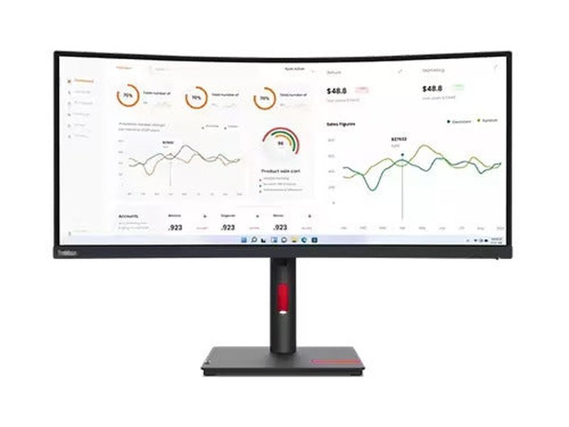 ThinkVision T34w-30 Monitor is 3-side near-edgeless, immersive 34" WQHD curved display. 3440 x 1440 resolution lets you take in all the finer details. A 21:9 aspect ratio delivers a panoramic experience, while a 1500R curvature delivers a consistent focal length across the screen. It is a treat for the eyes with rich, vivid colours brought to life by a 99% sRGB colour gamut.