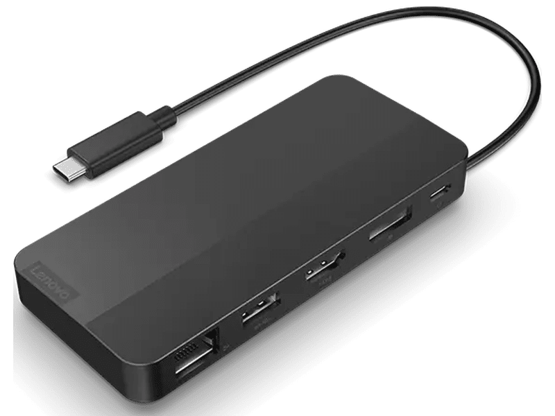 Compact and portable, the Lenovo USB-C Dual Display Travel Dock slips easily into your pocket and features adjustable built-in cable management, making it the ideal on-the-go productivity tool.