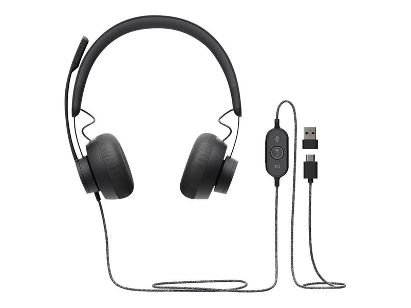 Zone Wired is lightweight, stylish and designed for all-day use. The Teflon-coated stainless steel headband features a silicone head cushion and memory-foam ear pads that provide a comfortable fit throughout the workday. The spiral-pattern ear cup design and speckled, braided cable on both sides of the headband complete a contemporary, professional appearance.