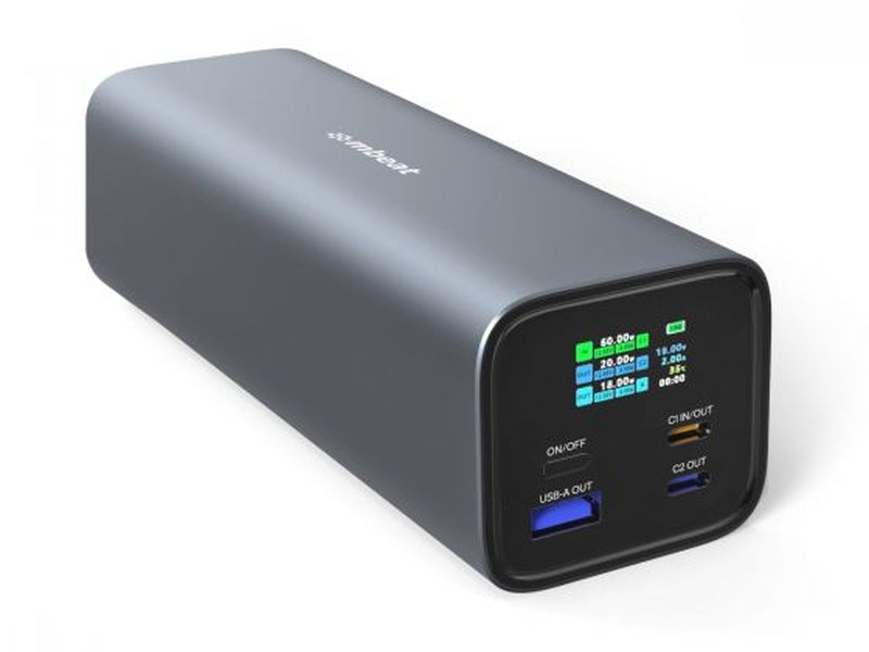 The mbeat Gorilla Power 27000mAh USB-C PD 140W Power Bank offers rapid charging, USB-C PD 3.1 innovation, laptop/tablet compatibility, and safety monitoring through its smart display, delivering reliable power for all your devices on the move.