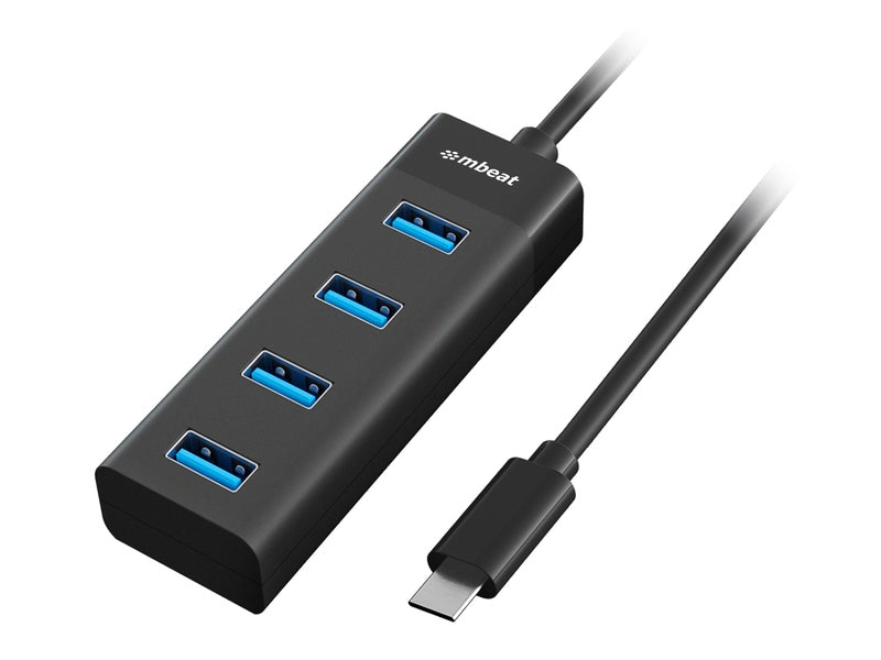 mbeat USB-C to 4-Port USB-A 3.0 Hub, Black