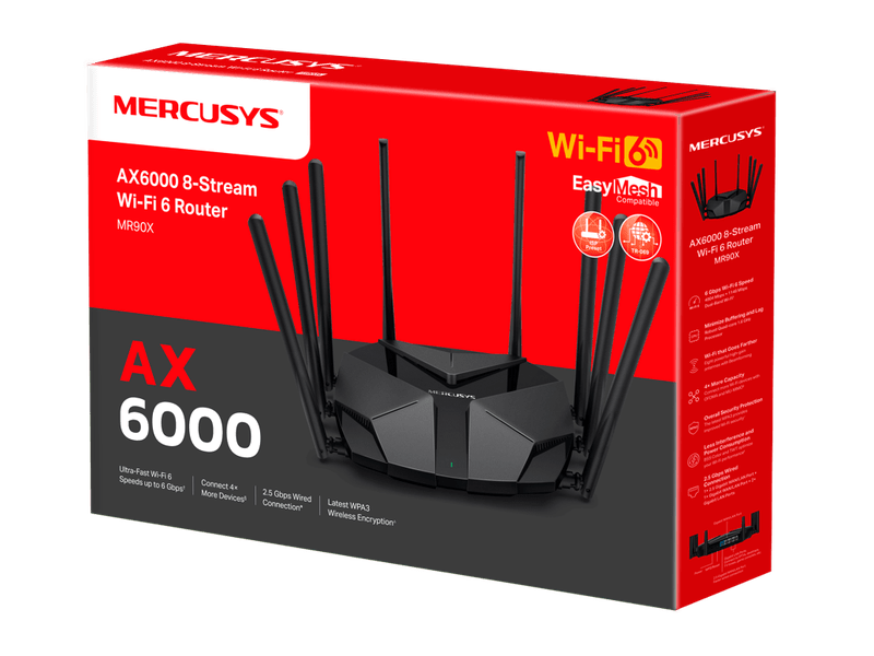 | Package Contents | • MR90X AX6000 Wi-Fi 6 Router • Power Adapter • RJ45 Ethernet Cable • Quick Installation Guide |