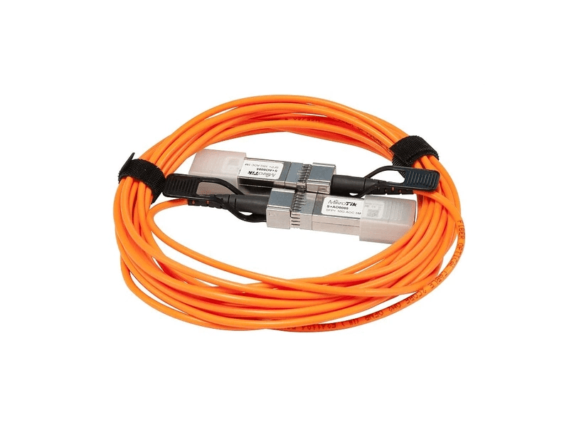 5m SFP+ 10Gbps Active Optics direct attach cable. This is highly cost-effective way to connect two SFP/SFP+ devices for very short distances, within racks and across adjacent racks. It works with products with SFP/SFP+ ports, including new RB4011 series (RB4011 series are not compatible with our passive direct attach cables S+DA0001 and S+DA0003)