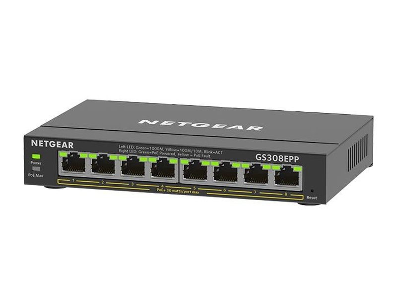 Easy to manage, fundamental network features at an affordable cost for SMBs. GS308EPP offers 123W total power budget to power devices PoE devices such as VoIP phones, IP cameras, wireless access points, etc.