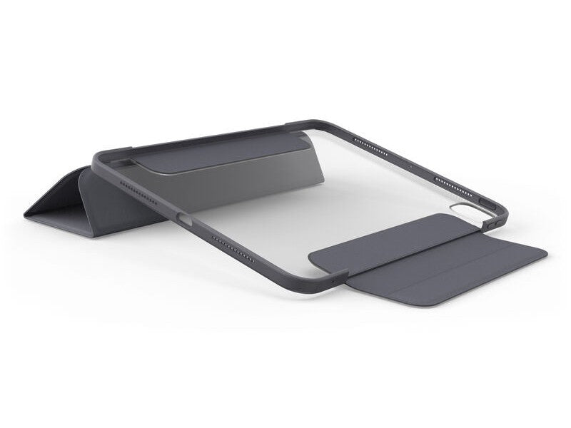 Clear folio iPad Pro 11-inch (M4) case protects against drops and scratches and converts into multiple positions for hands-free typing and viewing. The folio’s microfiber lining guards the screen and holds tight with magnets, which also activate sleep/wake modes for quick-start functionality and battery preservation.