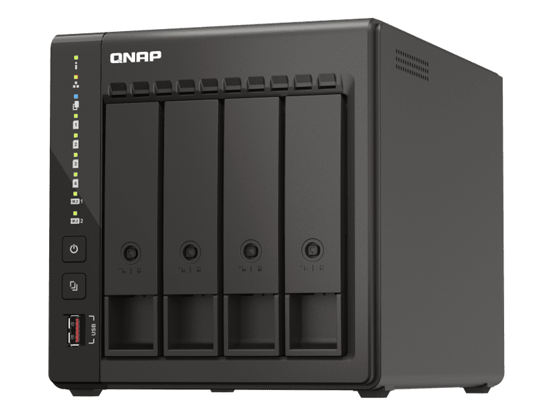 The TS-453E features 2.5GbE connectivity, 8GB RAM, and M.2 slots for NVMe SSD caching to deliver high performance for applications such as surveillance systems, virtual machines, file servers or backup servers. Dual HDMI outputs also provide direct multimedia playback and robust surveillance monitoring. QNAP will provide long-term availability and support for the TS-453E, providing a great choice for businesses requiring matching NAS models deployed in multiple locations.