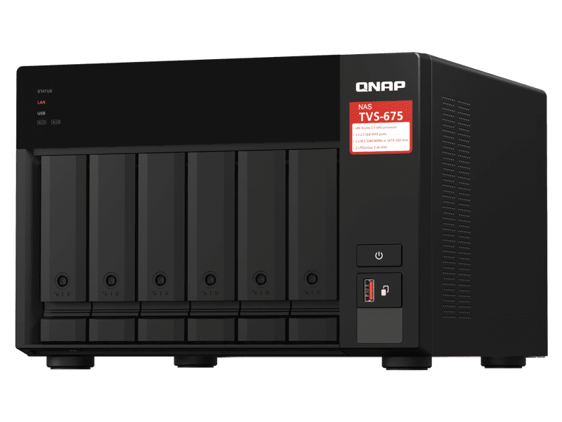 The TVS-675 is also ideally matched with QNAP’s managed and unmanaged 2.5GbE/10GbE switches to form high-speed, secure, and scalable network environments without going over budget. QNAP also provide 2.5GbE/5GbE/10GbE PCIe cards and USB 5GbE adapters for Windows®/Linux® workstations, allowing you to easily build a high-speed network environment for productive team collaboration.