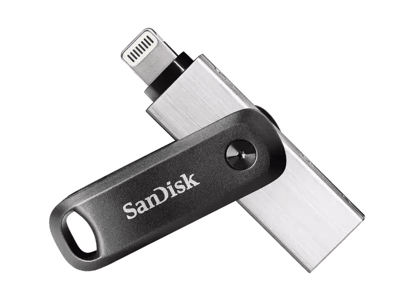The iXpand™ Flash Drive Go has a swivel design that protects its connectors when it’s tossed in your bag or pocket and a keyring hole makes it easy to attach to your keyring. So it’s always handy if you need to free up space when you’re out and about.