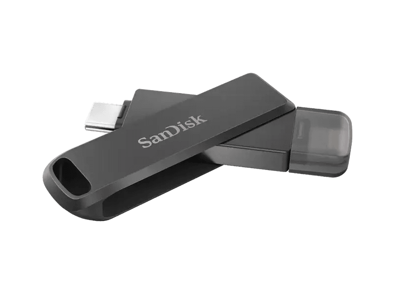 The SanDisk iXpand Flash Drive Luxe comes with not one but two connectors so you can easily move files between your iPhone, iPad Pro, Mac, and USB Type-C™ devices, including Android™ phones2.