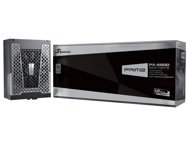 When selecting a power supply, it’s crucial to estimate the required power for both current and future components in your system. The Seasonic PRIME PX-2200 is a robust power supply capable of safely powering up to four RTX 4090 graphics cards, thanks to its adherence to ATX 3.1 and PCIe 5.1 specifications. Designed for demanding applications such as artificial intelligence and other high-power workloads, this flagship unit from the PRIME series delivers top-tier performance built on high-quality components.