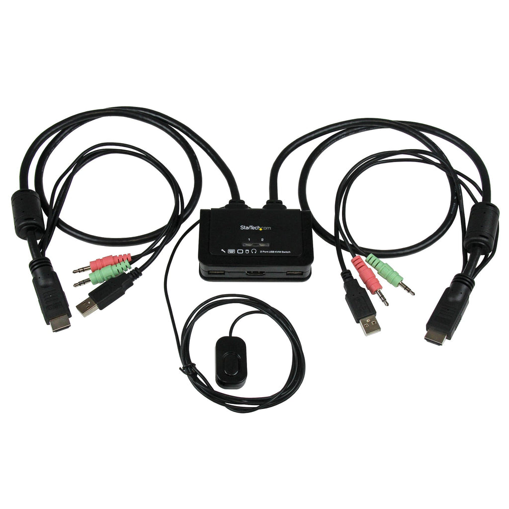 2 Port USB HDMI Cable KVM Switch with Audio and Remote Switch – USB Powered