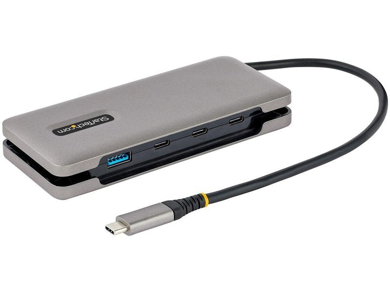 This 4-Port USB-C Hub expands the connectivity of a USB-C laptop. This hub features four USB 3.2 Gen 2 (10Gbps) enabled ports, three USB-C and one USB-A, that support high-bandwidth USB peripherals. Connect the attached USB-C cable to a USB Type-C™ or Thunderbolt™ 3/4 port, located on the host computer, to enable the quick connection of up to 4 peripherals.