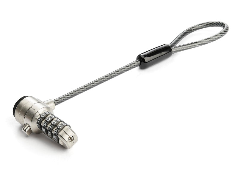 • ADDITIONAL LOCK HEAD: 6" (15cm) Anti-theft cut-resistant vinyl-coated steel security cable (4.4mm thick); combination lock w/ 4-digit resettable code; compatible w/ Kensington Style Slots (K-Slots)