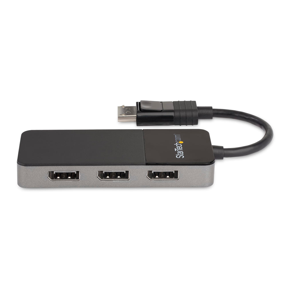 This 3-port DisplayPort MST hub lets you create a high-performance workstation by connecting three DisplayPort monitors to your DisplayPort device, helping to increase and maximize your productivity. The multi-monitor splitter supports High Dynamic Range (HDR) and provides sharper images with enhanced video.