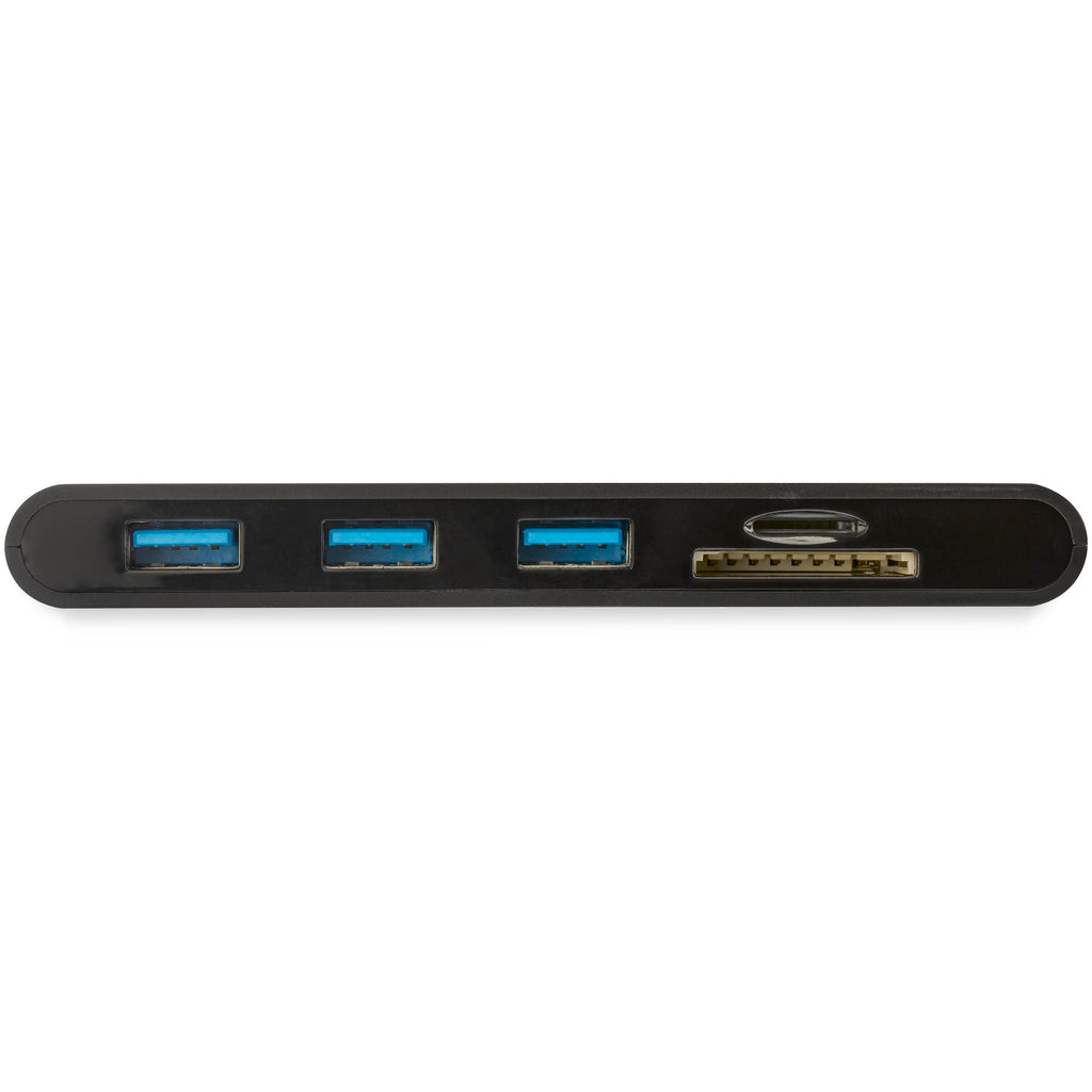 Add video output, three USB 3.0 ports, SD/micro SD card readers, and GbE port to your laptop through a single USB-C port