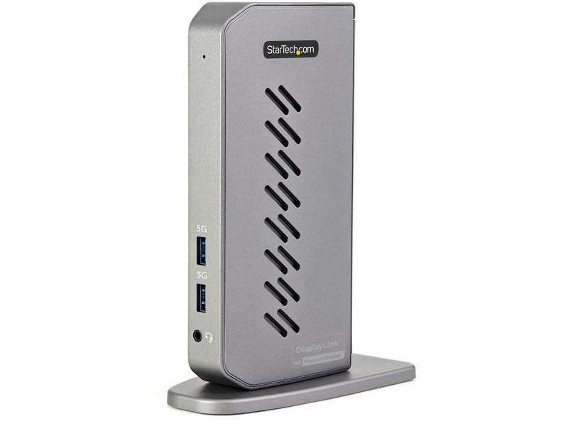 Transition from the legacy USB-A (USB 3.2) to the new USB-C with this universal laptop docking station for USB-C and USB-A laptops. The USB 3.2 Gen 2 (10 Gbps) Type-C dock features dual HDMI and/or DisplayPort monitors, fast-charge, six USB Type-A downstream peripheral ports, and headset audio.