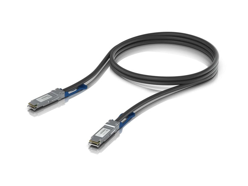 QSFP28 direct attach cable with a 100 Gbps max data rate.