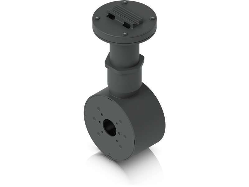 Tamper-resistant, back-to-back mount for two UniFi Bullet, Dome, or Turret cameras that supports flat surface installation and attachment to 1 1/2" NPS threaded conduit.