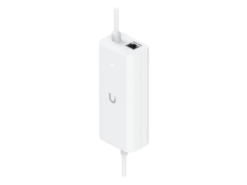 An AC adapter with integrated PoE, enabling the UniFi Cloud Gateway device to support PoE output on a single port.