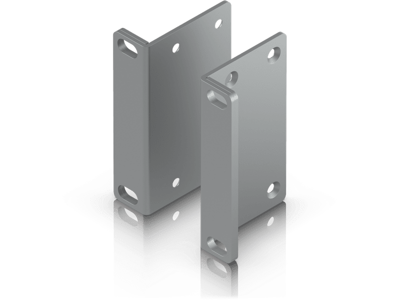Replacement rack ears for UniFi 1U or 2U rack-mount devices with included Precision Rack Mount inserts and screws.